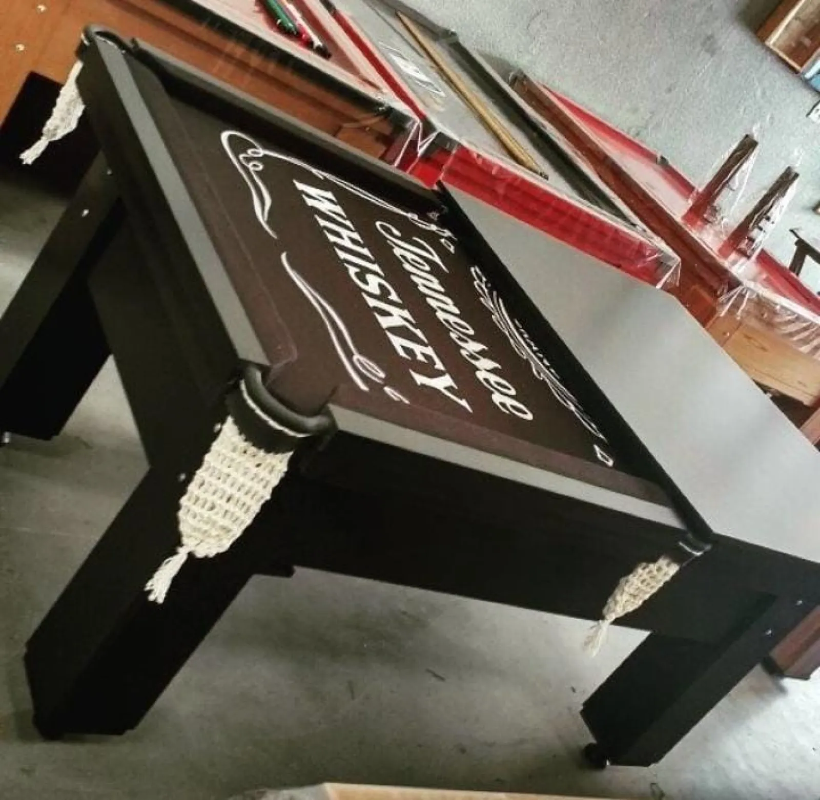 -Mesa de bilhar com tampo de pedra ardósia;